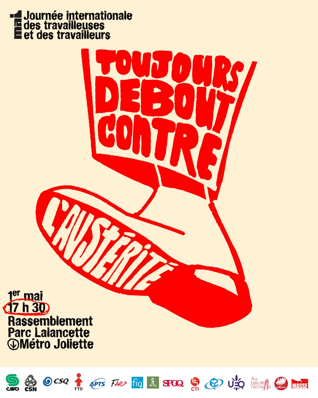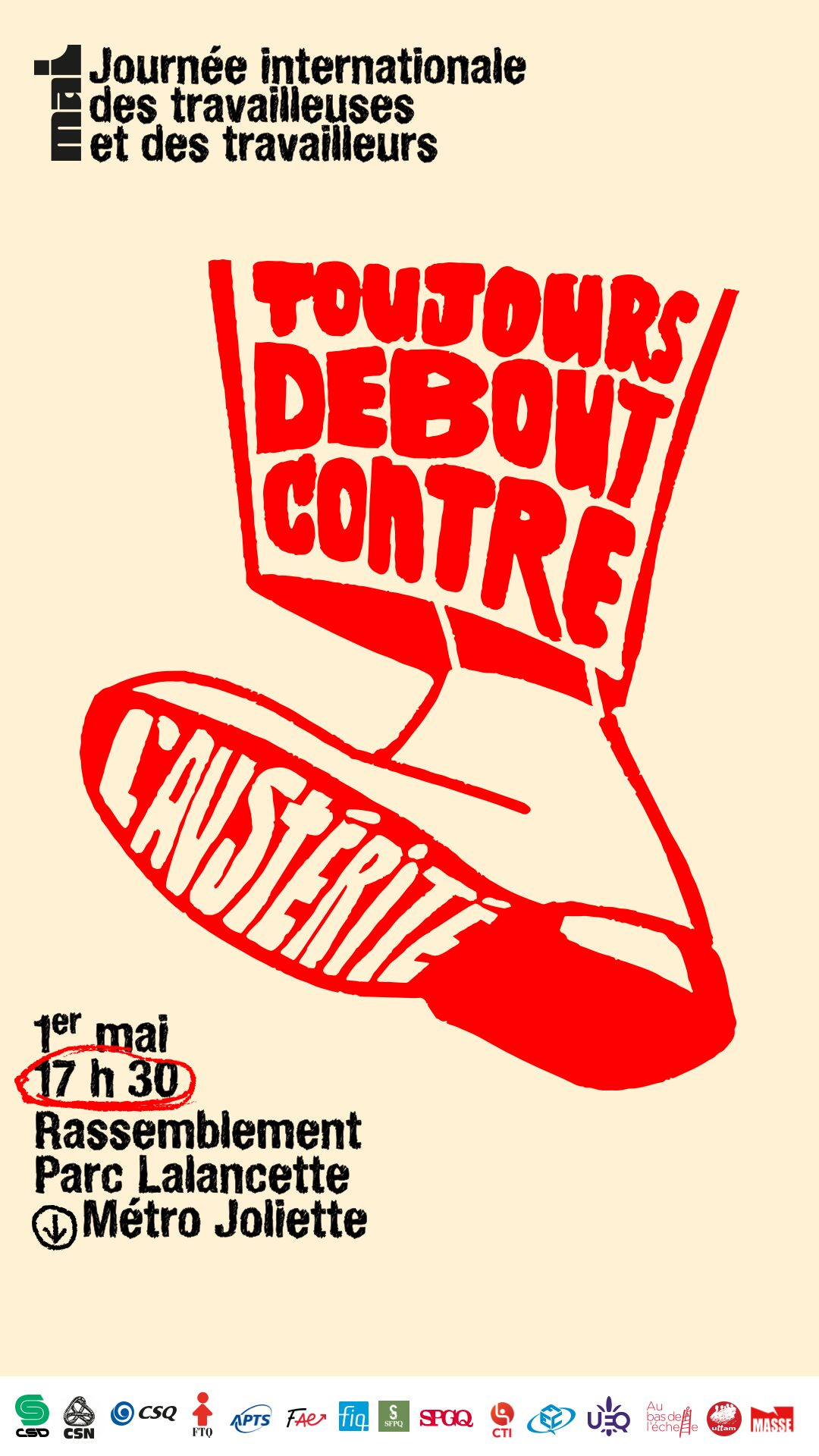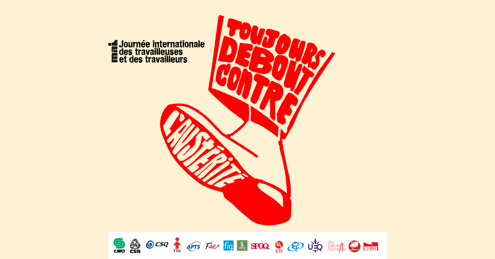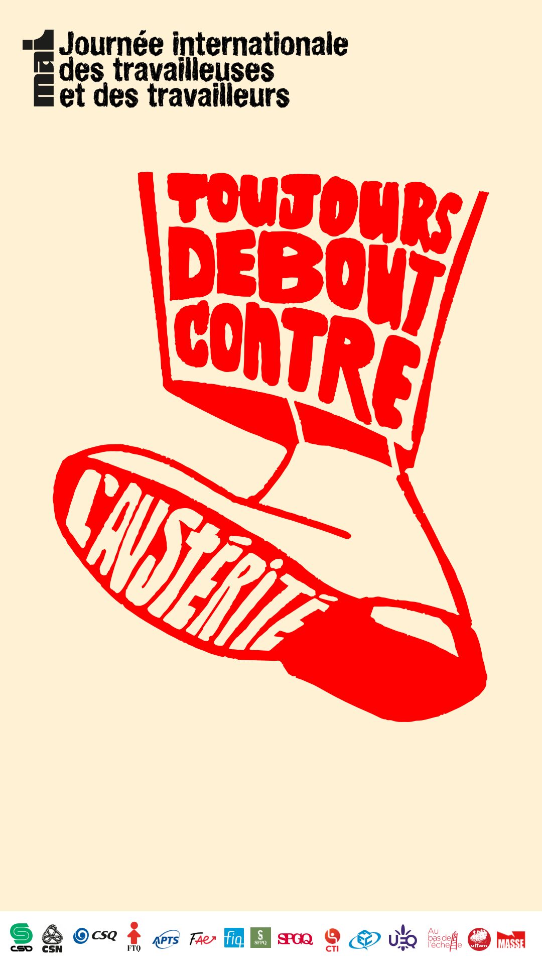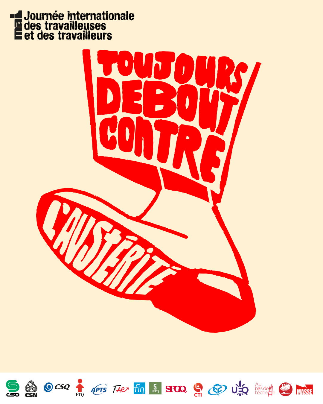 Pour cette édition de la Journée internationale des travailleuses et travailleurs, le message est sans équivoque : Toujours debout contre l’austérité.