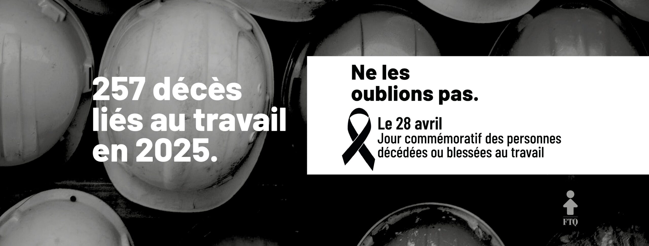 Québec, le 28 avril 2026. – La Fédération des travailleurs et travailleuses du Québec (FTQ) souligne encore cette année, le 28 avril, le Jour commémoratif des personnes décédées ou blessées au travail. Une journée pour se souvenir, mais aussi pour se mobiliser. En 2025, 257 travailleuses et travailleurs ont perdu la vie à la suite d’un accident de travail ou d’une maladie professionnelle. Un bilan inacceptable qui rappelle l’urgence d’agir.