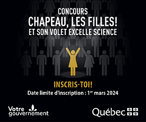 Voir la liste des gagnantes 2024 : https://www.quebec.ca/gouvernement/reconnaissance-prix/education/chapeau-les-filles-excelle-science/laureates-2023-2024.