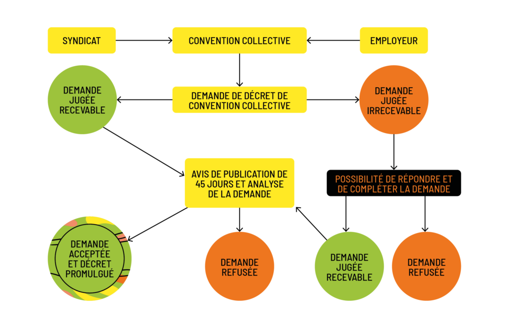 Quel est le processus menant à l’adoption d’un décret de convention collective?