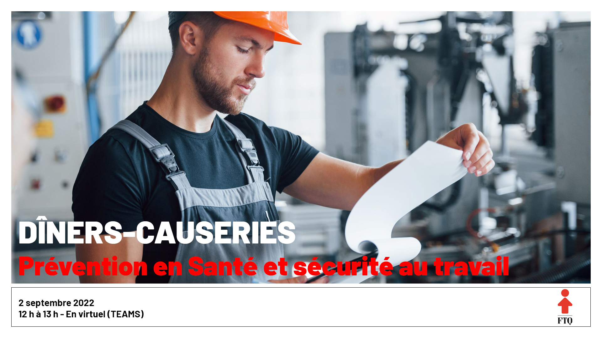 Sous une forme virtuelle, la FTQ vous invite à partager et échanger sur les enjeux en prévention de la santé et la sécurité du travail que vous rencontrez dans vos milieux. Des conseillères et conseillers du service de santé et sécurité y seront pour vous aider à trouver des moyens d’agir et faire changer votre milieu de travail. Dans le contexte du régime intérimaire et des nouvelles modalités législatives, il est essentiel que nous soyons solidaires.