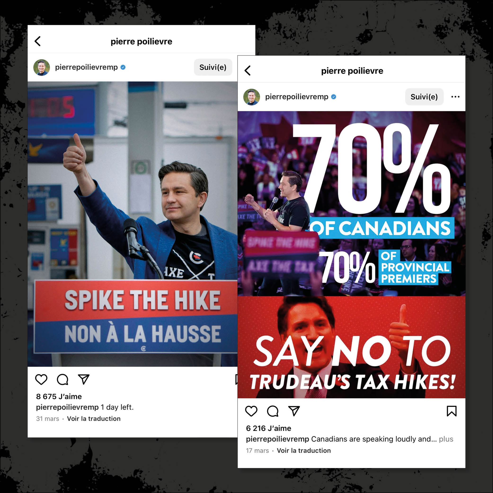 Fait intéressant, qui reflète les liens qu’entretiennent les nouvelles droites entre elles : en 2022, les vidéos de Pierre Poilievre publiées sur ses réseaux sociaux étaient accompagnées du mot-clic caché #mgtow, acronyme de «Men Going Their Own Way», lui permettant d’apparaitre dans les réseaux antiféministes.
