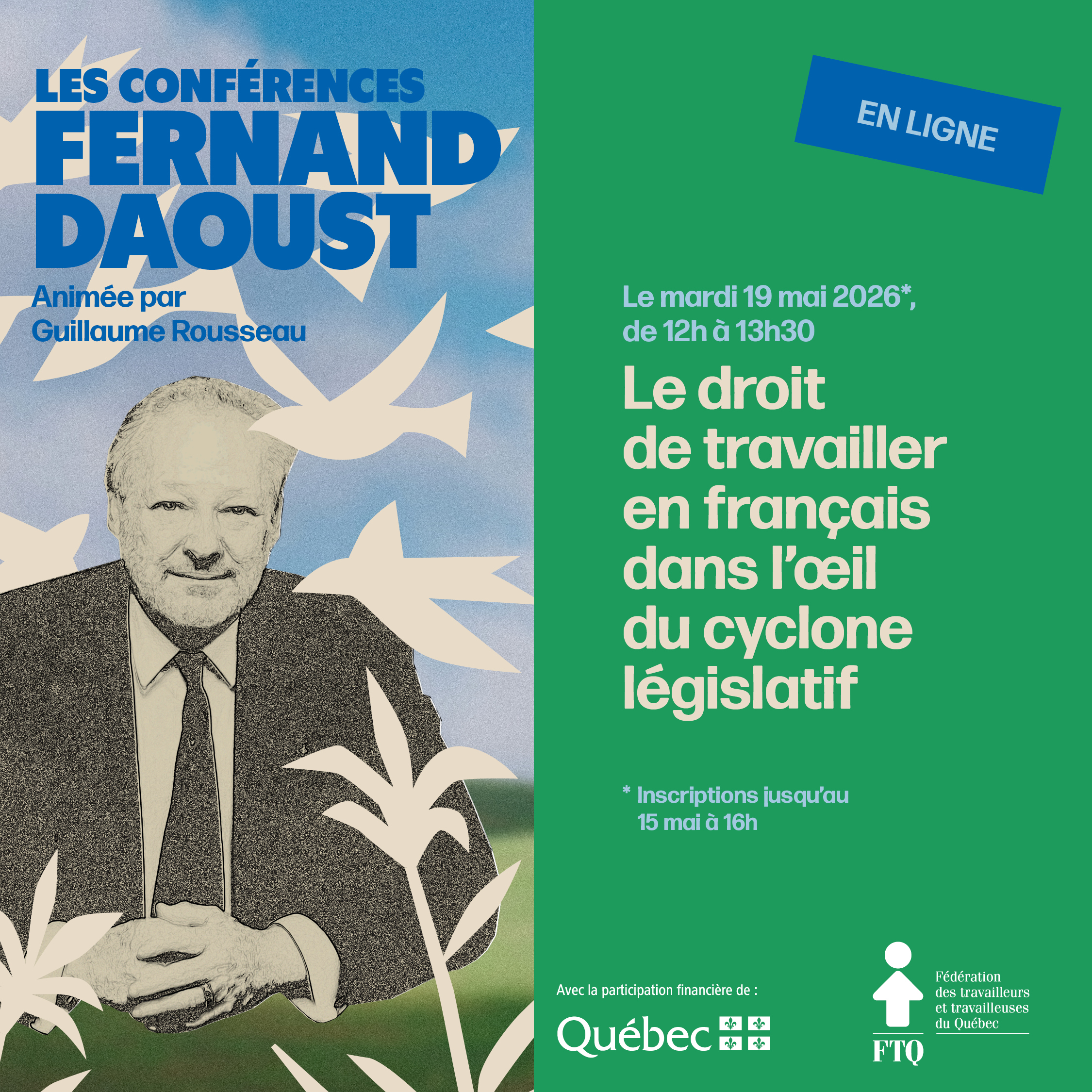Dans le cadre d’un projet réalisé grâce à la contribution financière de l’Office québécois de la langue française (OQLF), le service de la Francisation de la FTQ présente son nouveau cycle de conférences Fernand Daoust pour l’année 2026.