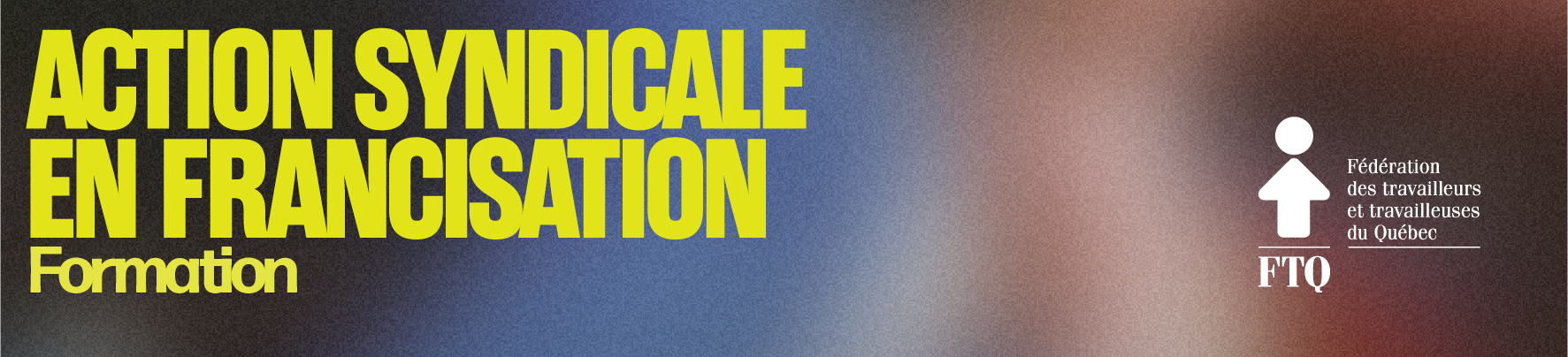 Les formations Actions syndicales en francisation se donnent plusieurs fois par année. Elles visent à faire connaître le droit de travailler en français et l’application de la Charte de la langue française, dans les milieux de travail. Elle permet aux personnes participantes de se familiariser avec la démarche de francisation de l’entreprise et d’explorer le rôle syndical au sein d’un comité de francisation. Finalement, la formation vise à généralement informer et outiller les membres qui y participent, en matière de francisation au travail.